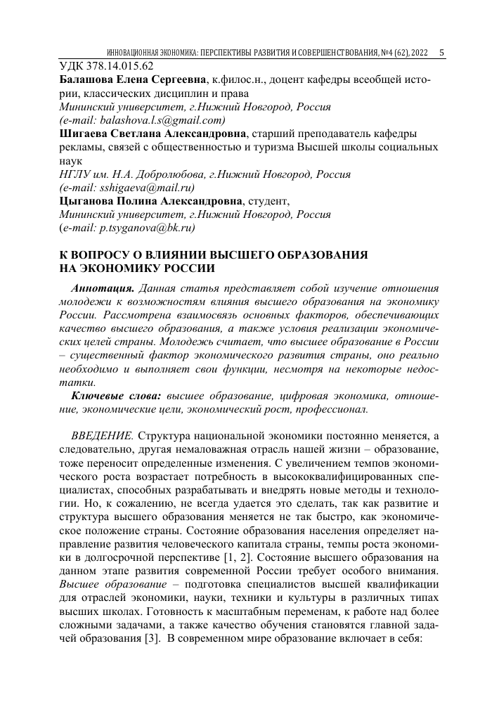 Роль высшего образования в экономическом развитии Нижнего Новгорода