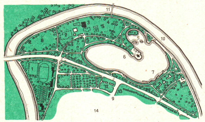 В парке представлены спортивные площадки для волейбола, футбола, тенниса, а также аренда велосипедов, катамаранов и роликовых коньков, что позволяет заняться разнообразными видами активности.