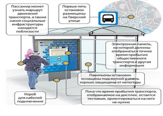Умные остановки предоставляют актуальную информацию о прибытии транспорта, обеспечивают безопасность и комфорт ожидания, включая доступ к Wi-Fi и видеонаблюдение.