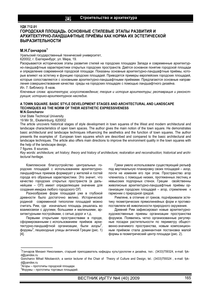 Архитектурные особенности площади