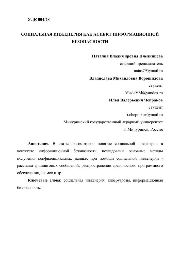Моральная ответственность специалистов социальной инженерии