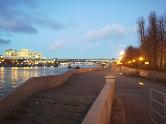 Ответ: Пушкинская набережная расположена в центре одного из российских городов и примыкает к крупной водной артерии — реке или заливу.