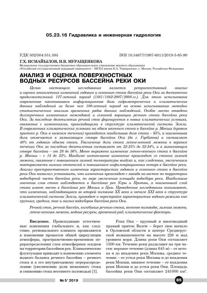Гидрология Оки характеризуется сезонными колебаниями уровня воды с весенним половодьем, вызванным таянием снежного покрова, и снижением объёма воды в летний период. Зимой река покрывается льдом, что накладывает ограничения на навигацию и использование водного пути. Среднегодовой расход воды на разных участках реки варьируется в зависимости от рельефа, климатических условий и антропогенного воздействия, что делает изучение гидрологических характеристик важным для управления ресурсами и предотвращения паводков.