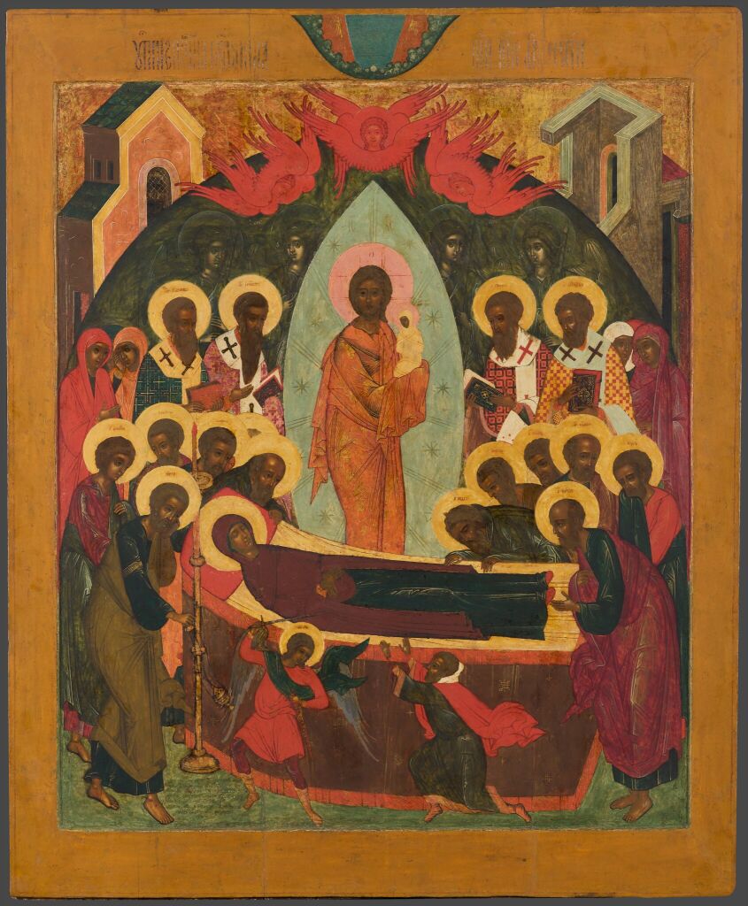 Икона Успения Пресвятой Богородицы занимает центральное место в православной иконографии и церковном почитании. Эта икона изображает момент сошествия души Богородицы с тела, окружённой апостолами и ангелами. Часто на иконе можно увидеть Иисуса Христа, принимающего душу матери в Свою десницу, что указывает на божественное значение этого перехода и обожение человеческой природы.